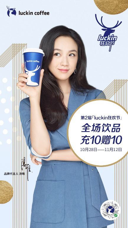本次2019年雙11第2屆luckin狂歡節(jié),長達16天的“充10贈10”的超大力度優(yōu)惠,同時疊加周邊產品88折、“瑞幸X優(yōu)酷特惠套餐”等多重活動。不但優(yōu)惠力度堪稱最大,同時,包括湯唯、肖戰(zhàn)和馮唐等各種明星名人IP聯(lián)名潮流周邊產品的參與打call,也讓這屆luckin狂歡節(jié)異彩紛呈,堪稱國內咖啡連鎖行業(yè)內最受矚目,也是飲品行業(yè)力度最大的雙11促銷。