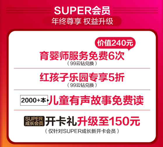 即日起,上蘇寧易購(gòu)參與蘇寧紅孩子“年終狂歡搶購(gòu)盛典”活動(dòng),10點(diǎn)、15點(diǎn)、20點(diǎn)整點(diǎn)搶2019元母嬰神券,進(jìn)入蘇寧拼購(gòu)小程序最高可領(lǐng)取8元膨脹紅包。全國(guó)近200家蘇寧紅孩子門店還推出滿30元減30元神券限量砍,99云鉆免費(fèi)兌換育嬰師服務(wù)、紅孩子樂園5折優(yōu)惠等。
