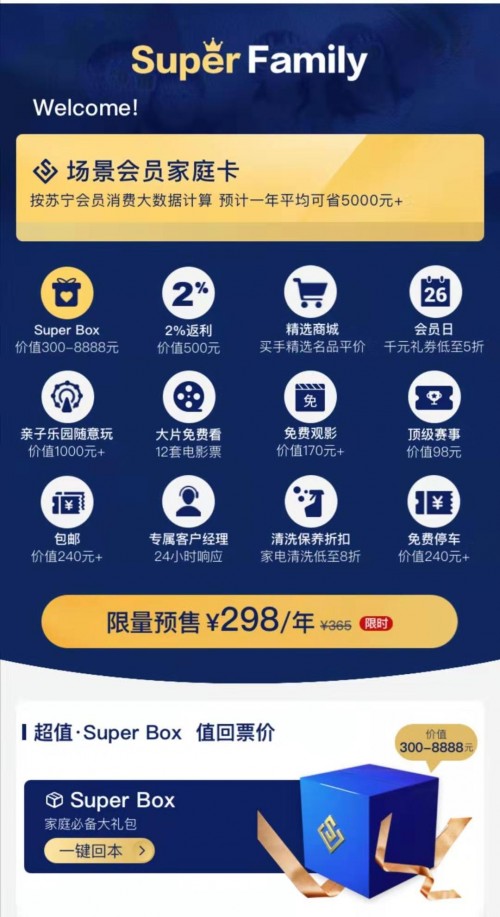 年初,蘇寧易購(gòu)?fù)瞥?S UPER VIP專屬會(huì)員特權(quán),母嬰家庭只需辦理價(jià)值149元的 Super VIP會(huì)員卡,再加150元,即最高花費(fèi)299元,就能在蘇寧紅孩子游樂(lè)不限時(shí)間、不限次數(shù)的玩上一整年。貫穿全年的紅粉會(huì)員答謝會(huì),通過(guò)海量母嬰正品、專業(yè)的育嬰師服務(wù)和特色會(huì)員福利活動(dòng)圈粉超千萬(wàn)。而最新升級(jí)的蘇寧Super Family會(huì)員更是以承包一家人的衣食住行為出發(fā)點(diǎn),融合了蘇寧體育、蘇寧影城、蘇寧金融、蘇寧紅孩子、蘇寧廣場(chǎng)等業(yè)態(tài),共12項(xiàng)特權(quán),發(fā)力會(huì)員場(chǎng)景零售,打造了完善的會(huì)員生態(tài)服務(wù)。