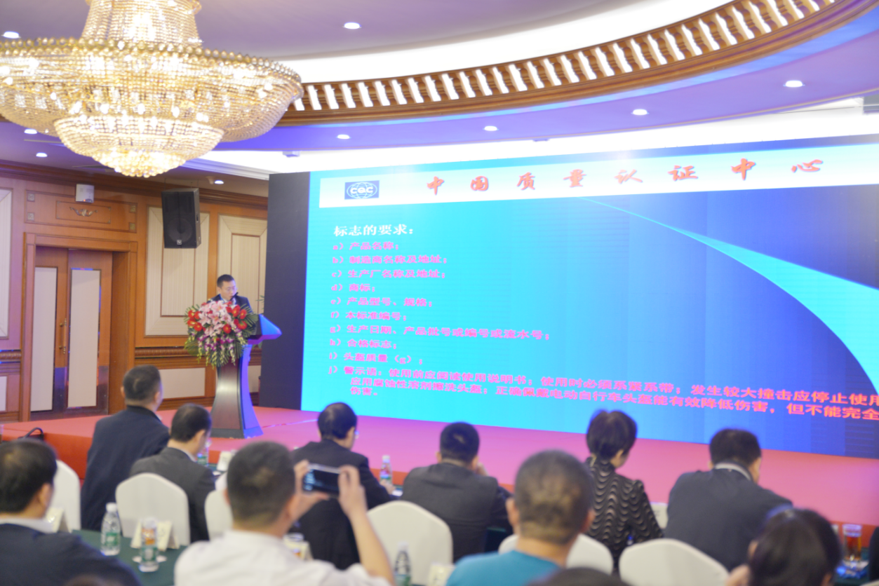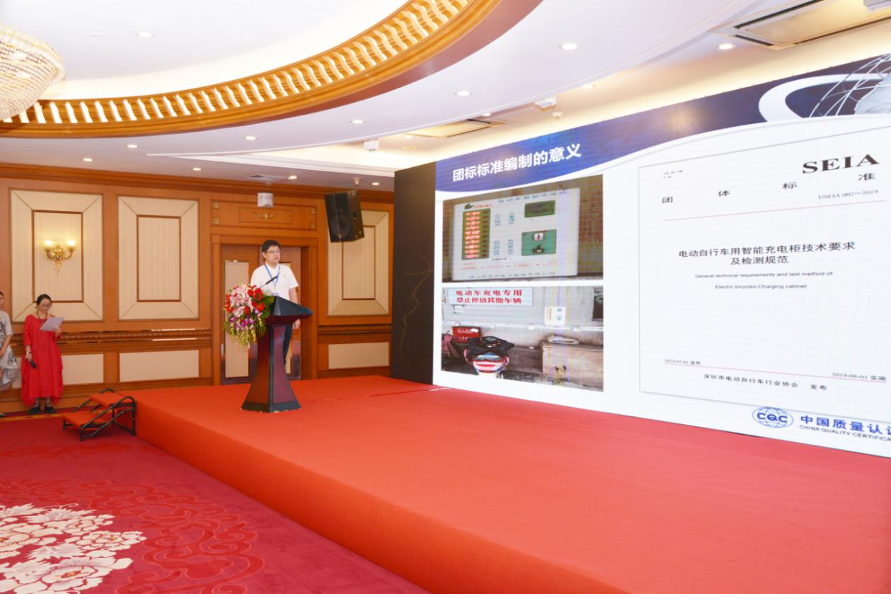 會(huì)議現(xiàn)場(chǎng)正式發(fā)布《電動(dòng)自行車(chē)乘員頭盔技術(shù)要求及檢測(cè)規(guī)范》、《電動(dòng)自行車(chē)用智能充電柜技術(shù)要求及檢測(cè)規(guī)范》和《電動(dòng)自行車(chē)用鋰離子蓄電池技術(shù)要求及檢測(cè)規(guī)范》等三項(xiàng)團(tuán)體標(biāo)準(zhǔn),并舉行了“深圳市電動(dòng)自行車(chē)行業(yè)安全標(biāo)準(zhǔn)先行示范啟動(dòng)儀式”。中國(guó)質(zhì)量認(rèn)證中心總部郝鑫瑞、中國(guó)質(zhì)量認(rèn)證中心深圳分中心陳昱、深圳市計(jì)量質(zhì)量檢測(cè)研究院楊東平分別對(duì)三項(xiàng)標(biāo)準(zhǔn)作了展示和解讀。