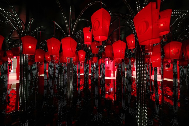 接下來,依次步入四個房間,感受蘭蔻新春游園會的美麗驚喜與美妙樂趣?!靶『谄俊奔易逍麓合薅钛阌|膚感受,伸出手靠近高科技智能試用裝置,“小黑瓶”精華自動滴落,為你重現(xiàn)細嫩好膚質(zhì)。同時,更有蘭蔻持妝粉底家族和菁純唇膏為你打造新年開運妝。