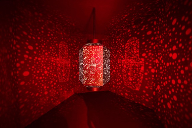 在這奇妙的光影空間,光影由中央向四周擴散,循環(huán)往復(fù),好似漫天煙花綻放,絕美絢爛、精彩絕倫。同時滿載美好祝愿的紅燈籠明暗變化,盡享沉浸式視覺體驗。