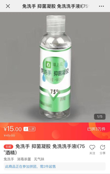 春節(jié)假期進入尾聲后,有少部分工廠陸續(xù)復(fù)工。其中有一家來著于蘇寧“拼工廠”的河北企業(yè)與蘇寧拼購?fù)献?,開足馬力,全力生產(chǎn)酒精含量為75%的免洗手抑菌凝膠。據(jù)蘇寧拼購相關(guān)負責(zé)人介紹:“蘇寧將根據(jù)最近疫情消費數(shù)據(jù)指導(dǎo)該‘拼工廠’生產(chǎn),預(yù)估未來幾天銷量,讓工廠效率達到最大。”據(jù)悉,該款“75%免洗手抑菌凝膠”商品僅2月2日上半日便拼出3萬單。河北“拼工廠”負責(zé)人表示,目前產(chǎn)能能達到日均20萬瓶。