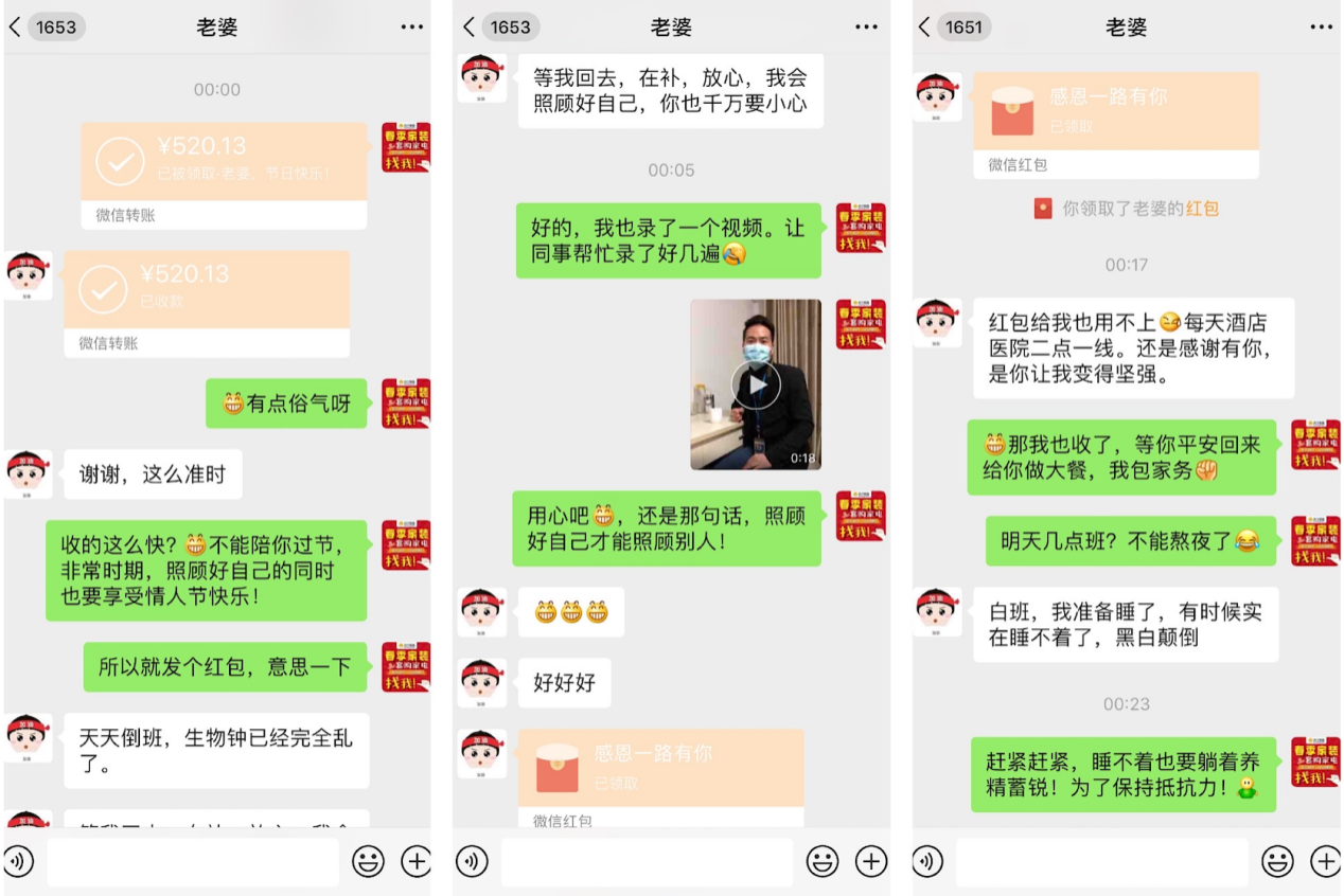 妻子也回贈(zèng)了紅包,說:“感謝有你,是你讓我變得堅(jiān)強(qiáng)?!?span style="text-indent: 2em;">盡管疫情讓他們相隔千里,但愛情始終連接著彼此的心。