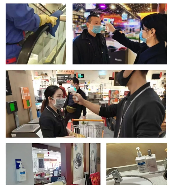 由于網(wǎng)上“配送到家”服務(wù)訂單量的劇增,在保障網(wǎng)上訂單及員工的安全性方面,蘇寧家樂(lè)福也做了十足防范措施。首先,蘇寧家樂(lè)福要求所有工作人員一律佩戴口罩,并通過(guò)體溫檢測(cè)才能上崗。其次,門(mén)店每天至少會(huì)在3個(gè)時(shí)間段使用84消毒液對(duì)賣(mài)場(chǎng)所有公共區(qū)域以及辦公區(qū)、員工餐廳等區(qū)域進(jìn)行清潔衛(wèi)生消毒,并對(duì)手提籃、購(gòu)物車(chē)、電梯扶手、垂直梯按鈕每隔2小時(shí)進(jìn)行清潔消毒;再次,賣(mài)場(chǎng)的熟食產(chǎn)品加蓋加罩售賣(mài),安排專人看管,禁止顧客直接用手觸摸,停止提供“試吃”及“餐飲堂食”服務(wù)。所有快遞、外賣(mài)小哥必須佩戴口燥,并通過(guò)體溫檢測(cè),在門(mén)店入口用消毒凝膠清潔后方可提貨。