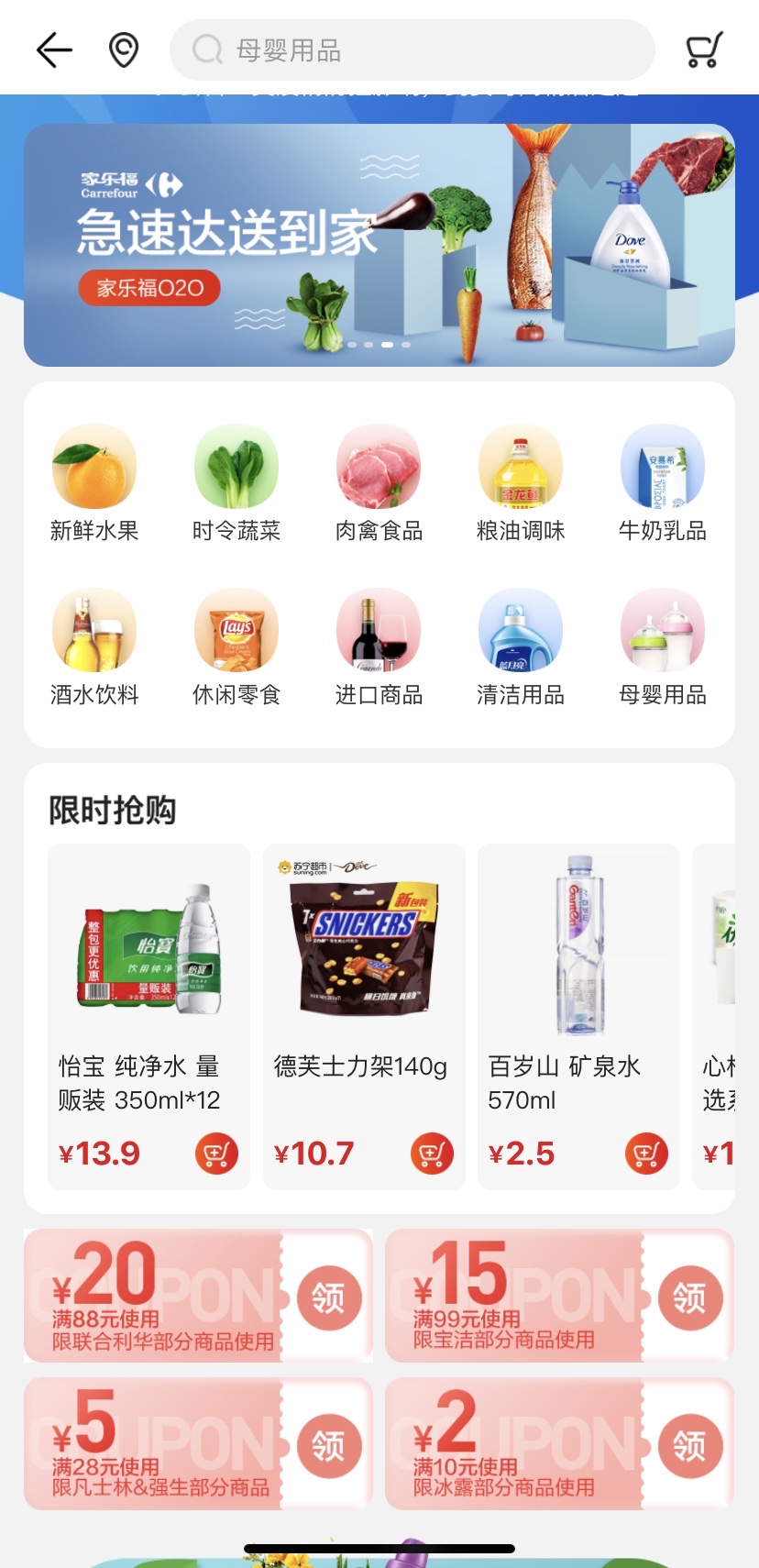 在商品方面,家樂?!巴桥洹狈?wù)覆蓋時(shí)令生鮮、糧油調(diào)味、酒水飲料、休閑零食、母嬰用品、個(gè)護(hù)清潔、家居百貨、各種進(jìn)口商品等,全面保障消費(fèi)者的物資供應(yīng)。
