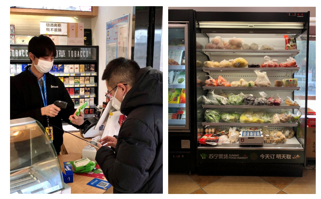 1月24日至2月8日期間,家樂福全國51個城市209家門店累計(jì)提供蔬菜11000噸,豬肉1340噸,水果3800噸,到家業(yè)務(wù)訂單量增長3.5倍;蘇寧小店訂單量同比增長419.62%,其中“線上下單,到店自提”的蘇寧菜場訂單量更是暴增超650%。