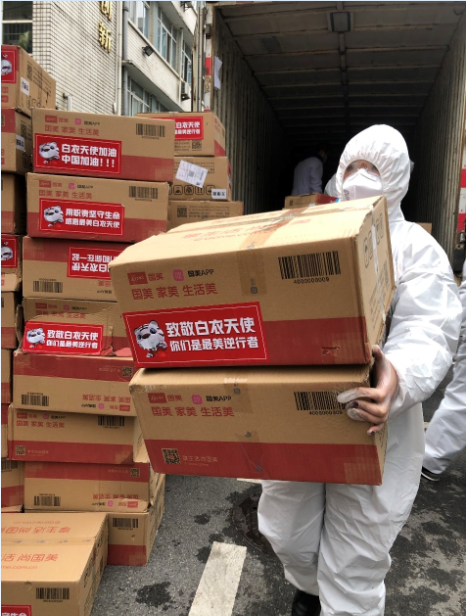 武昌醫(yī)院捐贈物資接收負責(zé)人在接受央視新聞記者現(xiàn)場采訪時表示,醫(yī)護人員穿上防護服會大量流汗,沒有胃口,方便食品可以改善食欲,而且更主要的是快,節(jié)約時間,幫助我們與時間賽跑,感謝國美等愛心企業(yè)的援助,他們默默無聞地提供了充足的物資和優(yōu)質(zhì)的服務(wù),幫助我們與新冠病毒抗擊,打贏這場戰(zhàn)役。