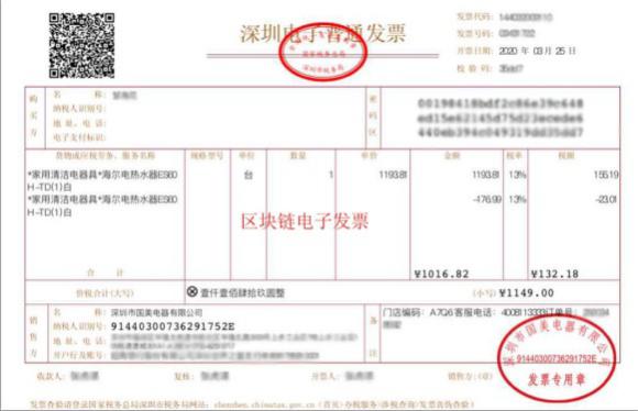 見圳客戶端·深圳新聞網(wǎng)2020年3月27日訊 日前,全國(guó)首張家電零售業(yè)區(qū)塊鏈電子發(fā)票在國(guó)美零售深圳分公司翠竹店成功開出。在成為深圳市上線區(qū)塊鏈電子發(fā)票的第一家家電零售商后,國(guó)美零售深圳分公司將向全市20家門店進(jìn)行全面推廣。深圳區(qū)塊鏈電子發(fā)票繼金融保險(xiǎn)、公共交通、商超餐飲、停車服務(wù)、互聯(lián)網(wǎng)服務(wù)等行業(yè)后,又將應(yīng)用場(chǎng)景拓展至了家電零售領(lǐng)域。