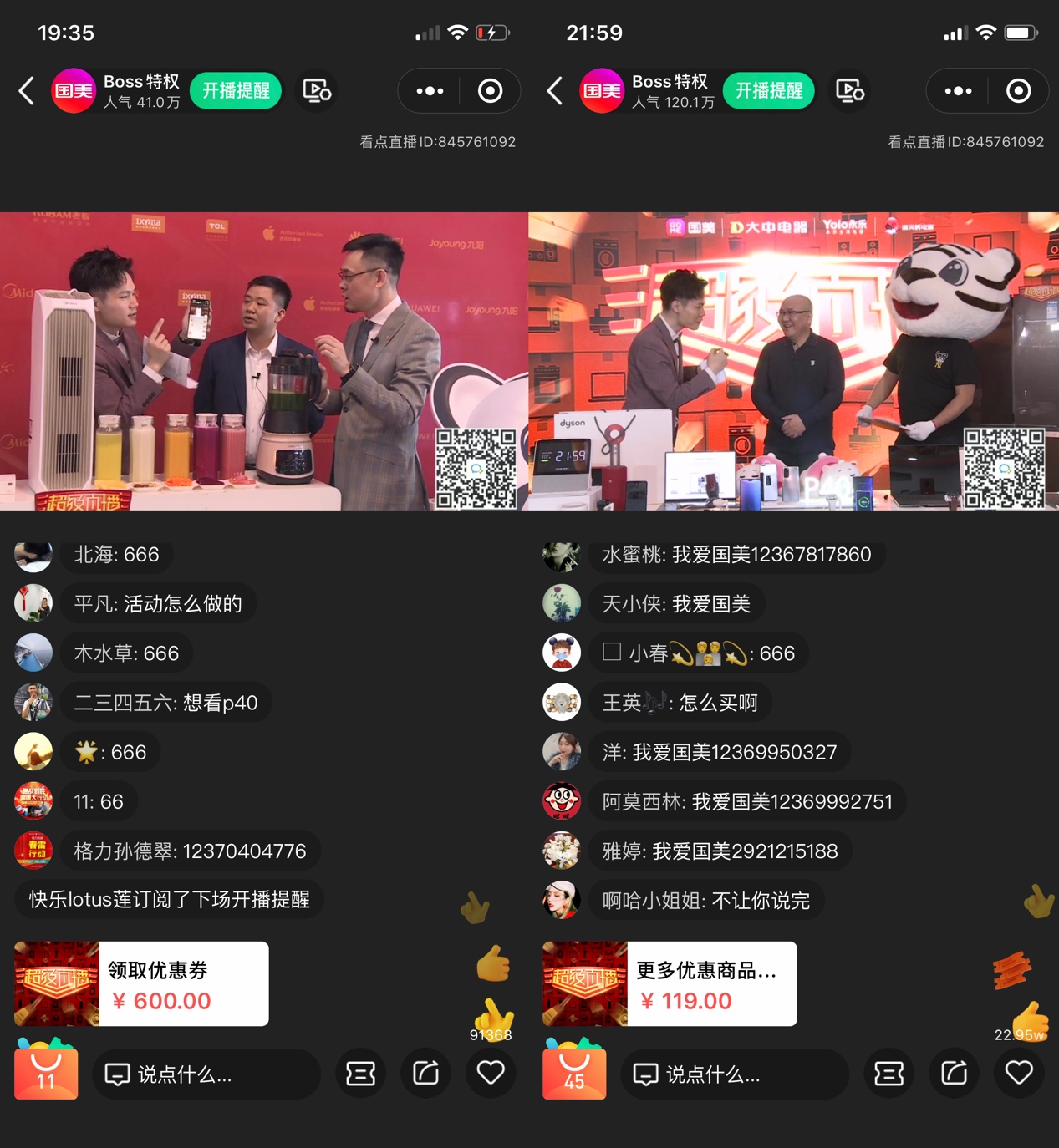 見(jiàn)圳客戶端·深圳新聞網(wǎng)2020年3月30日訊 日前,國(guó)美黑色星期伍營(yíng)銷(xiāo)活動(dòng)已進(jìn)入最后階段。3月28日晚7點(diǎn),國(guó)美在騰訊看點(diǎn)直播平臺(tái)啟動(dòng)了本次“黑伍”的壓軸大戲——超級(jí)直播。本次活動(dòng)國(guó)美把當(dāng)下熱銷(xiāo)的產(chǎn)品砍至史無(wú)前例的新低價(jià),同時(shí)在直播間內(nèi)多次抽獎(jiǎng)送出iPhone11、華為P40等禮品,直播人氣一路飆升,3小時(shí)直播活動(dòng)中,人氣值達(dá)到122.3萬(wàn),累計(jì)銷(xiāo)售商品6萬(wàn)余臺(tái),實(shí)現(xiàn)銷(xiāo)售額1.13億元,打造了一場(chǎng)真正的超級(jí)直播。
