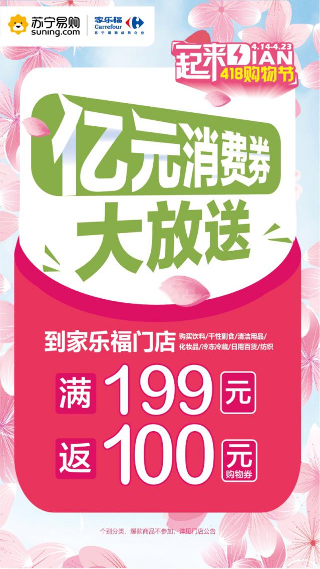 4月9日,家樂福宣布面向全國消費(fèi)者發(fā)放總額過億的家樂福消費(fèi)券,旨在提振市民消費(fèi)信心,促進(jìn)消費(fèi)回暖?!?18一起來Dian”購物節(jié)期間,凡在家樂福全國209家線下門店購物滿199元,即可獲贈總值100元的消費(fèi)券(5張20元消費(fèi)券),覆蓋眾多暢銷品類以及剛需民生商品(消費(fèi)券可在指定期間使用)。