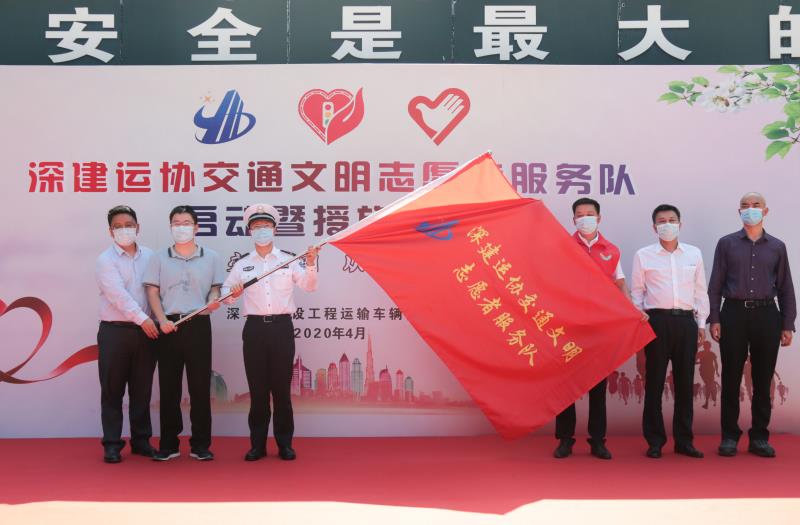 見圳客戶端·深圳新聞網2020年4月29日訊 為創(chuàng)建文明交通環(huán)境,引導行業(yè)人員自覺、主動參與志愿服務活動,用實際行動“服務社會,傳播文明”,昨日,深圳市建設工程運輸車輛協(xié)會在福田區(qū)交通警察局特勤大隊舉行了“深建運協(xié)交通文明志愿者服務隊啟動暨授旗儀式”。啟動儀式由協(xié)會黨委副書記兼紀委書記嚴勝強主持。深圳市交通運輸局、公安交警局、住房和建設局、社會組織管理局、義工聯(lián)合會領導和協(xié)會黨委領導班子、各黨支部書記、副會長、監(jiān)事長、副監(jiān)事長以及行業(yè)駕駛員代表等共計50余人出席了此次活動。