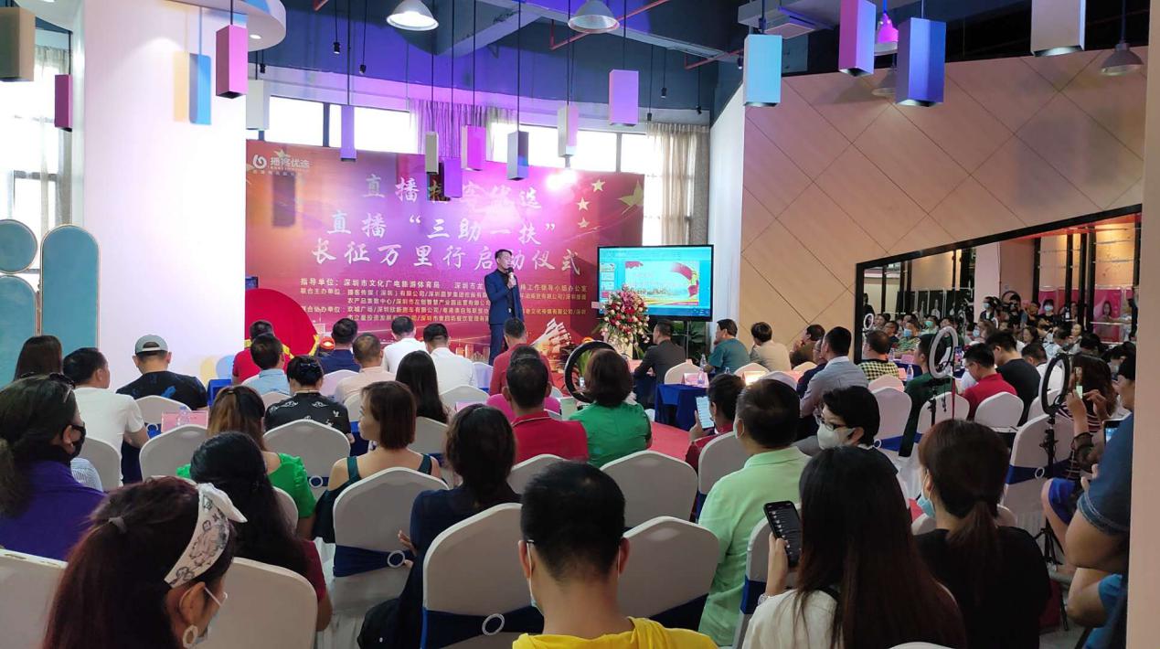 見圳客戶端 ·深圳新聞網2020年6月16日訊 昨天下午,播客優(yōu)選直播“三助一扶”長征萬里行啟動儀式在深圳市龍崗區(qū)播客傳媒(深圳)有限公司舉行。來自深圳市文體旅游局、陜西省寶雞市駐深辦、貴州省遵義市和銅仁市駐深辦、以及廣西桂林的代表蒞臨現(xiàn)場。
