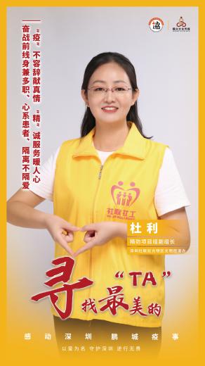 深圳社聯(lián)派駐光明區(qū)光明街道精防社工杜利,在一線戰(zhàn)疫中身兼多職、心系患者、隔離不隔愛。她不僅在深圳新冠肺炎確診數(shù)直線上升的敏感期,挺身而出主動為康復者親赴醫(yī)院領(lǐng)藥并送“愛”上門;白天更是積極開展社區(qū)巡查,幫助服務對象積極面對疫情;晚上再與防疫人員輪班值守、外出巡防,督促商戶們做好防護工作。