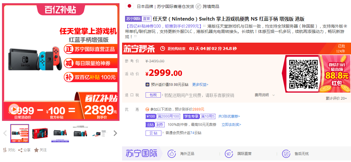 數(shù)據(jù)顯示,6月29日-7月5日,蘇寧國際口紅銷量增長明顯,最受歡迎的口紅色號(hào)為mac小辣椒磚紅色。為了給高考生鼓勵(lì),家長們也是操碎了心。數(shù)據(jù)顯示,6月29日-7月5日,蘇寧國際switch游戲機(jī)也銷售也創(chuàng)新高。目前,蘇寧國際該產(chǎn)品正參與百億補(bǔ)貼,優(yōu)惠力度與618期間差不多,不少家長選擇購買這款產(chǎn)品作為孩子們苦讀的獎(jiǎng)勵(lì)。