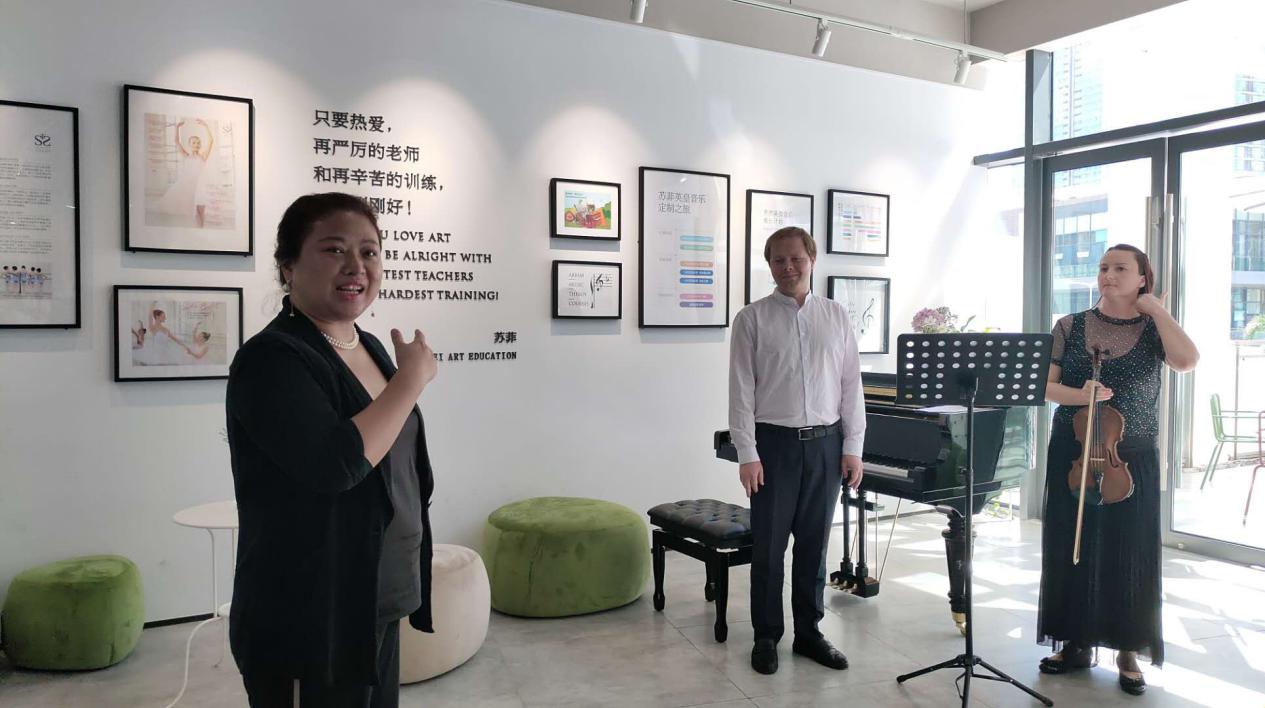 在欣賞完來自白俄羅斯的鋼琴老師和小提琴老師帶來《肖邦練習(xí)曲1C大調(diào)》以及《愛之憂傷》、《美麗的羅斯瑪琳》后,可愛的孩子們帶來了一堂“芭蕾舞”教學(xué)示范課,一群僅4、5歲的孩子們在芭蕾舞老師的帶領(lǐng)下,感受芭蕾舞的韻律,學(xué)習(xí)芭蕾舞的基本坐姿以及芭蕾舞的初級分解動作。課程中,老師更注重讓孩子理解芭蕾,了解芭蕾禮儀,也運(yùn)用可愛的教具讓孩子們不分散注意力,全神貫注參與到芭蕾舞學(xué)習(xí)當(dāng)中來。 據(jù)了解,蘇菲教育將在中國很小眾的英皇課程普及化,讓孩子在家門口就可以接觸到國際通行與高度認(rèn)可的芭蕾舞和鋼琴課程。作為深圳市英國皇家芭蕾舞和鋼琴的指定考點(diǎn),學(xué)生獲得的證書含金量很高,不但可以在申請國外大學(xué)時(shí)增加入學(xué)學(xué)分,還可以同步享受國外大學(xué)獎(jiǎng)學(xué)金制度。與此同時(shí),蘇菲教育在整個(gè)教育過程始終灌輸“雙語教學(xué)”理念,讓外籍教師與雙語教師用純英文或者雙語授課,為孩子們的“全球化視野”打下基礎(chǔ)。