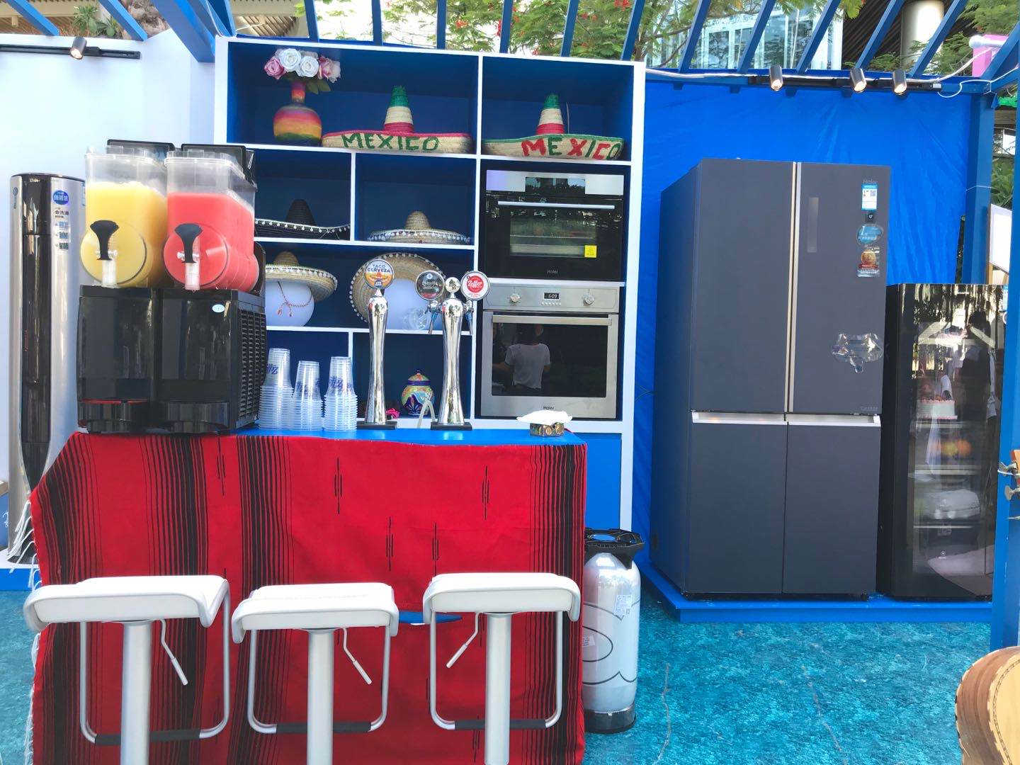 來(lái)到水吧,你可以看見(jiàn)冰箱、冰吧裝滿琳瑯滿目的酒水,來(lái)到現(xiàn)場(chǎng)的人們可以盲選3類基礎(chǔ)酒,自己或請(qǐng)調(diào)酒師為你調(diào)配一杯今天的lucky drink。冰箱里填充了滿滿的食材、水果,想吃各類冰沙都可以現(xiàn)場(chǎng)制作體驗(yàn)。來(lái)到廚電區(qū)域可以品嘗由海爾烤箱現(xiàn)場(chǎng)制作的小餅干,焦香酥脆讓你流連忘返。