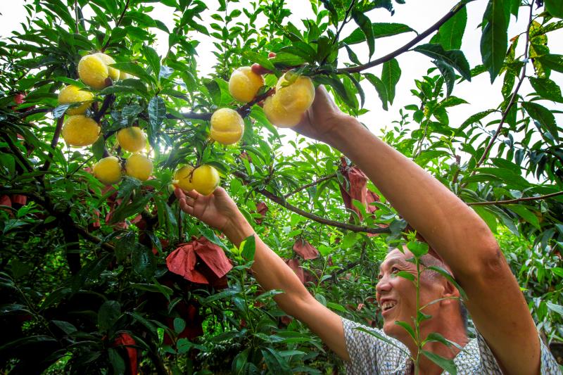 此次活動(dòng)舉辦地平樂(lè)村是炎陵黃桃的主產(chǎn)地之一,黃桃品質(zhì)首屈一指。記者看到,平樂(lè)村家家戶(hù)戶(hù)房前屋后漫山遍野都是黃桃,村民們正在忙著分揀、套袋、打包。小小的村道上,聚集了郵政、德邦、順豐等各大快遞公司。當(dāng)?shù)攸S桃種植大戶(hù)藍(lán)才洪告訴記者,接到訂單后,村民再上山采摘,經(jīng)過(guò)人工分揀,當(dāng)天就可以通過(guò)各個(gè)快遞公司將最新鮮的黃桃發(fā)走。