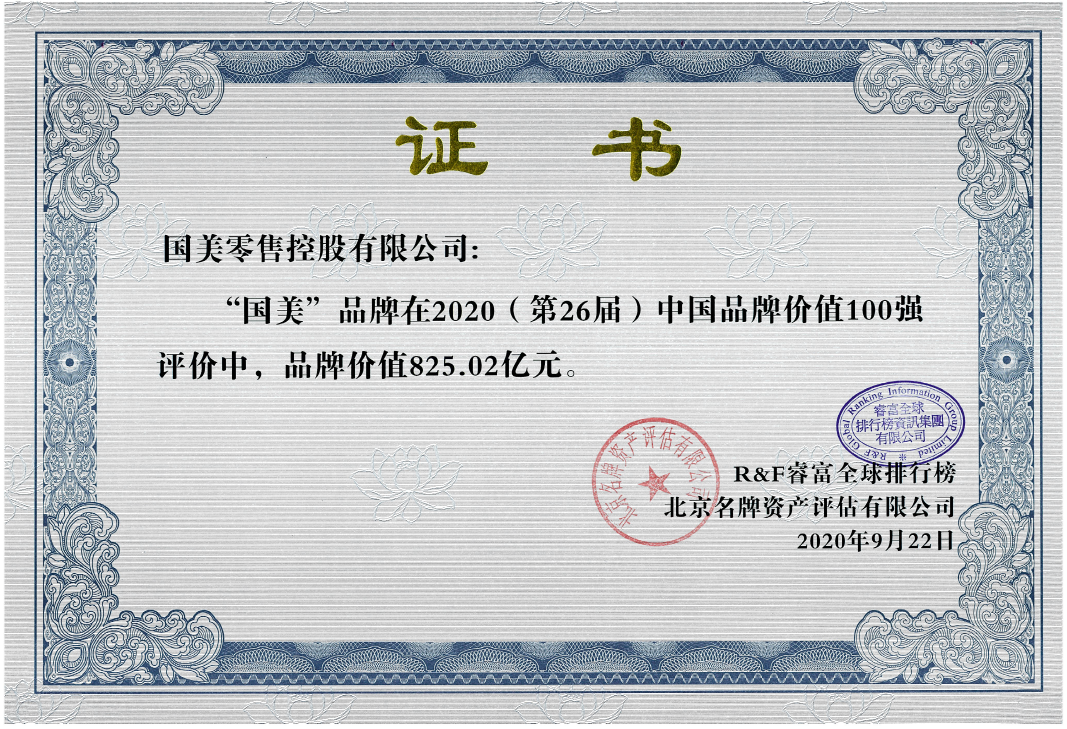 見圳客戶端·深圳新聞網2020年9月24日訊 日前,睿富全球排行榜資訊集團與北京名牌資產評估有限公司發(fā)布了2020(第26屆)“中國品牌價值100強”研究報告,國美入選“中國品牌價值100強”榜單,這也是國美連續(xù)14年位居該榜電器零售行業(yè)第一名。