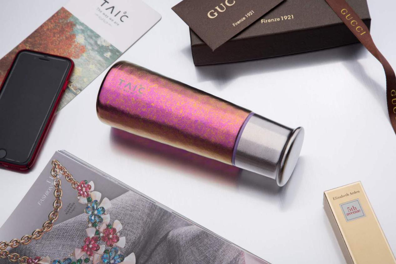 以這款純鈦T型杯為例:這款產(chǎn)品采用純鈦打造,純鈦具有形態(tài)穩(wěn)定、不易與食品飲品產(chǎn)生化學(xué)反應(yīng)、不易析出重金屬、不易出現(xiàn)排斥過敏反應(yīng)等優(yōu)點(diǎn);產(chǎn)品外觀不使用任何噴漆材料,而是通過Ti- Anox技術(shù)讓鈦金屬呈現(xiàn)出自然絢麗如寶石般的色彩,一改鈦金屬材料灰暗的冷峻;盡顯匠心的手工打磨、堅韌輕盈的材料特性、優(yōu)良的保溫保冷效果……每處細(xì)節(jié)都在彰顯TAI℃鈦度完美、堅韌、健康的設(shè)計理念。