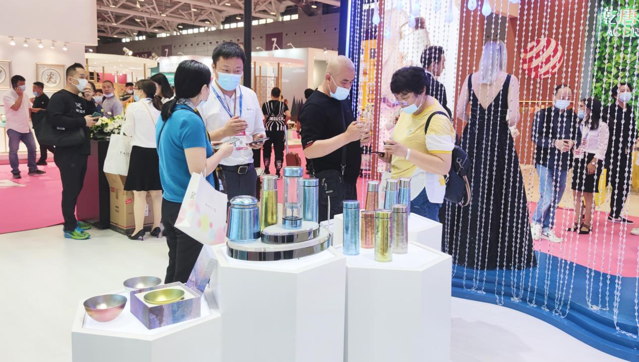 在產(chǎn)品體驗(yàn)區(qū)陳列的的純鈦水具,皆采用了99.8%純鈦打造,獨(dú)有的Ti- Anox工藝,輔以傳統(tǒng)的手工打磨,賦予產(chǎn)品獨(dú)一無二的寶石肌理,徹底顛覆了傳統(tǒng)鈦制品的外觀。獨(dú)特的鈦金屬工藝,非凡的英國貴族氣質(zhì),TAI℃鈦度的產(chǎn)品讓進(jìn)來參觀的人都愛不釋手。