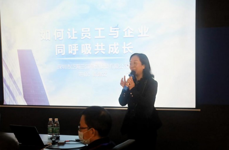在隨后的交流會上,泛海三江子公司副總經(jīng)理陳建文發(fā)表了主題為《如何讓員工與企業(yè)同呼吸共成長》的精彩演講。通過企業(yè)發(fā)展歷程及員工成長故事,陳建文女士為現(xiàn)場來賓分享了多年來泛海三江與員工共同成長的成功經(jīng)驗(yàn),以及如何讓員工真正地助力企業(yè)的長遠(yuǎn)發(fā)展。演講結(jié)束后,來自不同企業(yè)的管理人員紛紛發(fā)表了各自的觀點(diǎn)與看法,現(xiàn)場交流氛圍濃厚。