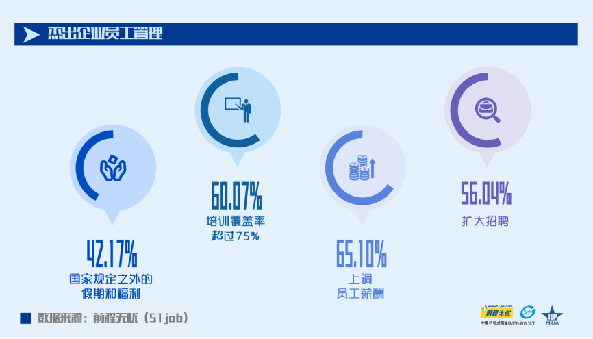 員工培訓方面,6成杰出企業(yè)員工培訓覆蓋比率超過75%,杰出企業(yè)的人均年培訓時長達到15.17小時,年人均培訓預算為1841元。薪酬方面,65.10%的杰出雇主上調了員工薪酬,平均增幅為8.31%;34.34%的企業(yè)員工收入與去年持平。