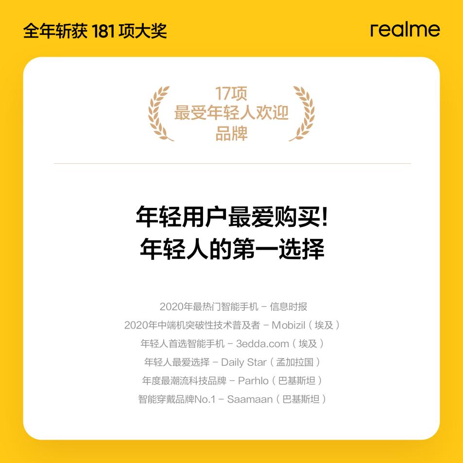 自創(chuàng)立以來,realme一直面向年輕用戶群體,基于對年輕人審美與偏好的精準(zhǔn)洞察與理解,不斷滿足和超越年輕科技愛好者的需求,這一策略在東南亞、南亞、歐洲、非洲等市場獲得極大認(rèn)可。2020年,全球給予realme“年輕人最喜愛品牌”等相關(guān)獎(jiǎng)項(xiàng)達(dá)17項(xiàng),用實(shí)力證明realme是“年輕人第一選擇”。同時(shí),realme一舉網(wǎng)羅全球各大產(chǎn)品獎(jiǎng)項(xiàng),充分證實(shí)了“好產(chǎn)品會(huì)說話,產(chǎn)品才是硬實(shí)力”這句被商界奉為圭臬的卓見。