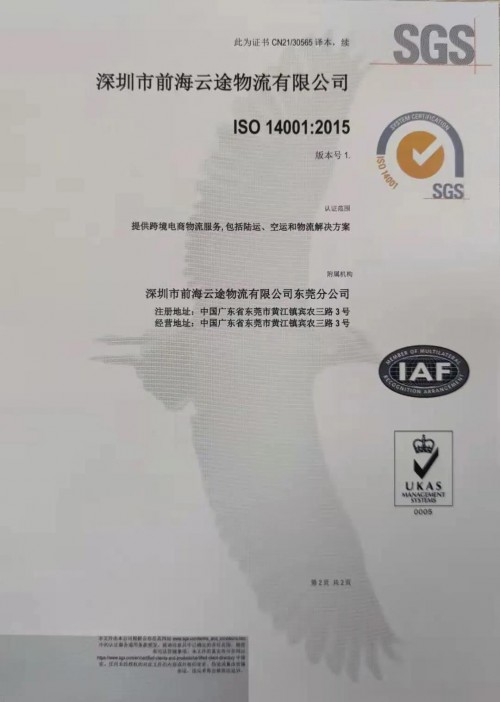 東方網(wǎng)2021年3月11日訊 繼2020年初獲得ISO9001質(zhì)量管理體系認(rèn)證后,近日云途物流順利通過專家組評(píng)審,再次獲得由國(guó)際公認(rèn)的檢驗(yàn)、鑒定、測(cè)試和認(rèn)證機(jī)構(gòu)SGS頒發(fā)的ISO14001環(huán)境管理體系、ISO45001職業(yè)健康與安全管理體系認(rèn)證。