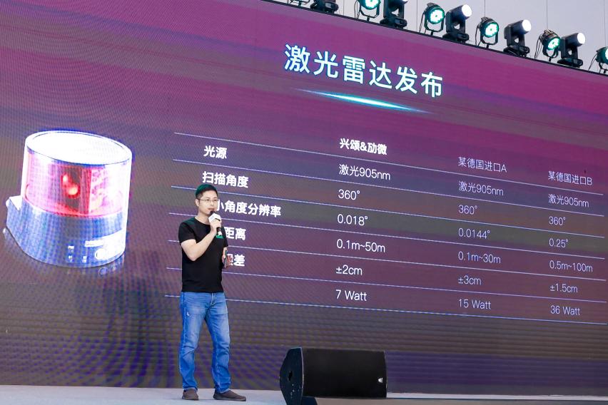 接下來進入到發(fā)布會重磅內容環(huán)節(jié),首先,勱微機器人CEO陳文成在會上宣布了勱微聯(lián)合興頌研發(fā)的激光雷達,這款激光雷達具有優(yōu)異的性能,即使在5%反射率的環(huán)境下,依然可以有50m的檢測距離,同時還具備非常穩(wěn)定的持續(xù)輸出,且精度保持在±2mm,較同行的±10mm更精準。