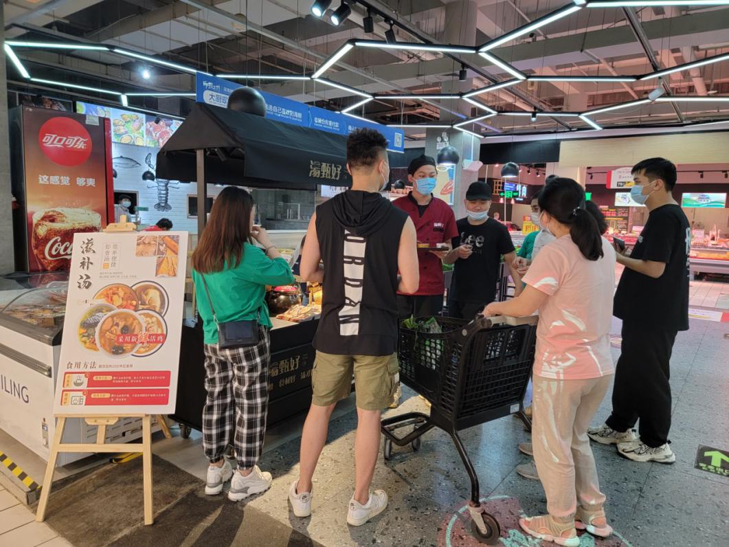 記者走訪深圳保利家樂(lè)福發(fā)現(xiàn),新上市的湯甄好專柜內(nèi)人頭涌涌,在售的各類半成品湯十分熱銷。主打滋陰養(yǎng)顏的紅棗北芪燉乳鴿湯、主打安神助眠的失眠安神湯、主打補(bǔ)血益氣的紅棗桂圓燉烏雞湯、主打益智開(kāi)竅的核桃燉竹絲雞湯、主打刷脂潤(rùn)膚的花膠燉烏雞湯……各類半成品湯品種齊全,三十余種口味的湯品陳列成為了店內(nèi)十分搶眼的區(qū)域。