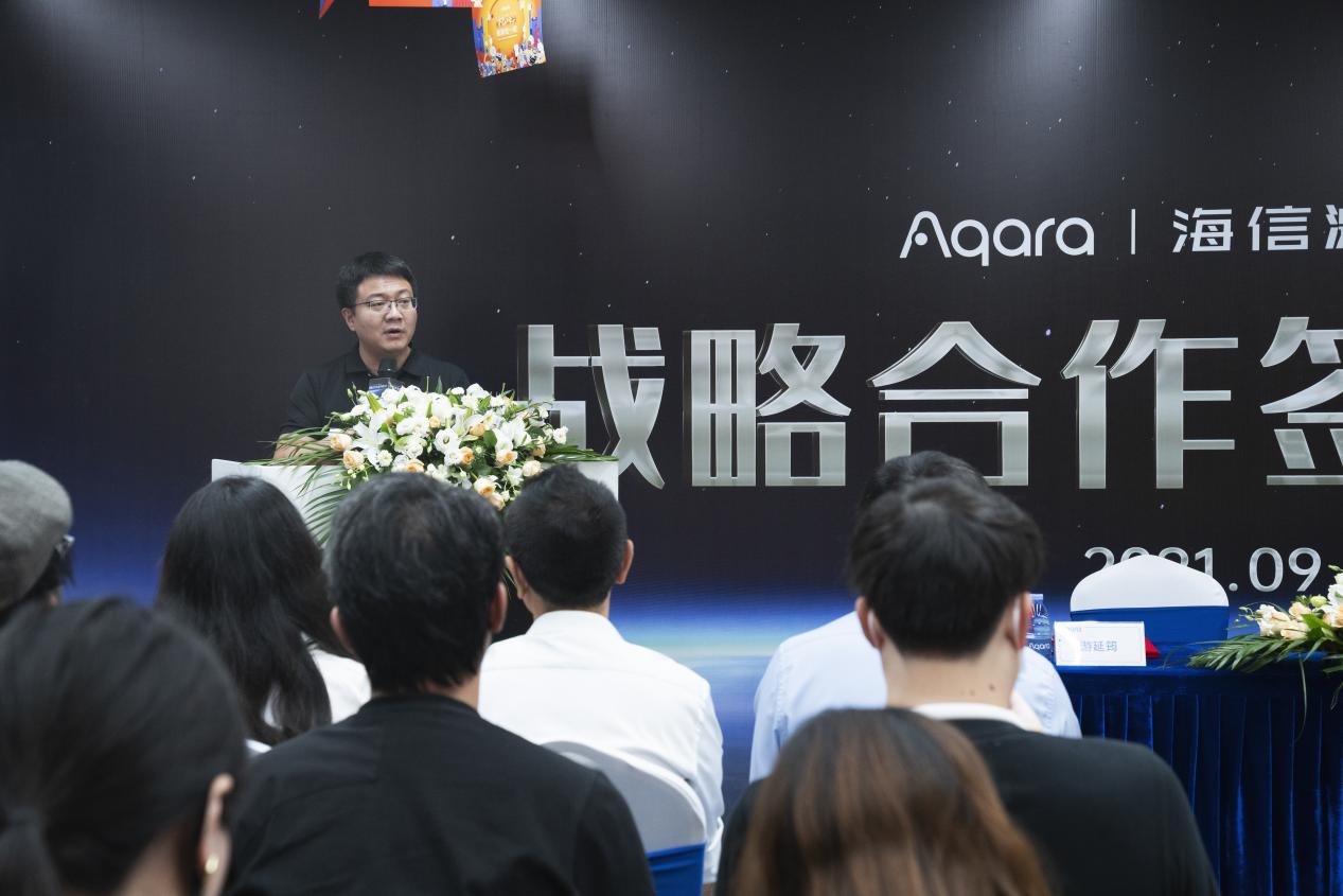 致辭環(huán)節(jié),海信集團(tuán)控股公司副總裁于芝濤也發(fā)來了線上祝福視頻,表達(dá)了對這次雙方合作,共同致力全屋智能美好體驗(yàn)再升級的美好祝愿。與此同時(shí),青島海信激光顯示股份有限公司的副總經(jīng)理王偉介紹了海信電視在戰(zhàn)略發(fā)展方向上的重塑新定位、新技術(shù)應(yīng)用、產(chǎn)品優(yōu)勢以及所取得的階段性成就等,并表示Aqara作為全球智慧生活方式的先行者和引領(lǐng)者,致力于打造「千人千面」的全屋智能生活方式,要做更懂用戶的“家”,這和海信電視“顯示無處不在,服務(wù)無處不在,連接無處不在”的發(fā)展理念不謀而合。除去智能化,雙方與生俱來的“綠色基因”更加夯實(shí)了這種合作契因,并始終堅(jiān)信,未來海信電視與Aqara將會不斷用綠色智能科技提升大家的家居生活品質(zhì),打造大屏?xí)r代的綠色客廳,引領(lǐng)中國IoT的發(fā)展。