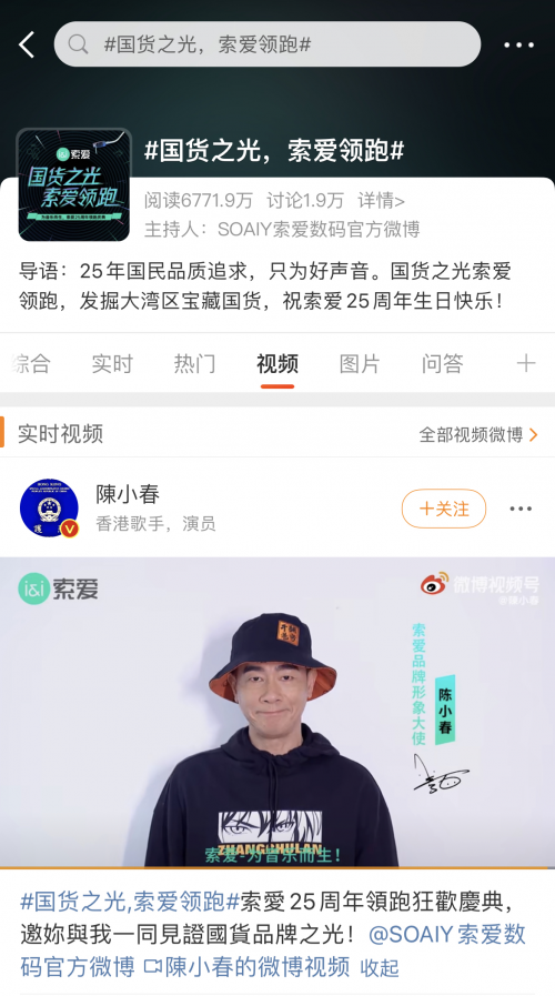 讀特客戶端·深圳新聞網(wǎng)2021年10月22日訊(記者 田志強(qiáng))近日,索愛廣州25周年慶領(lǐng)跑活動在網(wǎng)絡(luò)持續(xù)發(fā)酵,引爆輿論熱烈關(guān)注。作為音頻數(shù)碼行業(yè)首個(gè)登錄廣州塔的國貨品牌,索愛25周年領(lǐng)跑活動吸引了大量的媒體和達(dá)人齊聚廣州塔,索愛品牌和產(chǎn)品熱度以廣州為中心迅速向周邊地域傳播。在索愛冠名高鐵、簽約陳小春夫婦為品牌形象大使等品牌事件的疊加聚合效應(yīng)下,#國貨之光,索愛領(lǐng)跑#等話題和熱度持續(xù)傳播至各社交平臺,各個(gè)類別KOL相繼為索愛發(fā)聲,僅在微博平臺的話題閱讀量已突破數(shù)千萬。