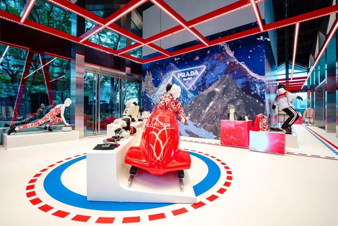 冬季運動是充滿活力和高水平競技精神的集中體現(xiàn)。經(jīng)過Prada標(biāo)志性風(fēng)格的煥新演繹,冬季運動為“冰上普拉達(dá)”限時店提供了靈感來源:一個展示戶外運動熱情、充滿挑戰(zhàn)、崇尚團(tuán)隊協(xié)作、體現(xiàn)高速魅力的個性原創(chuàng)空間。