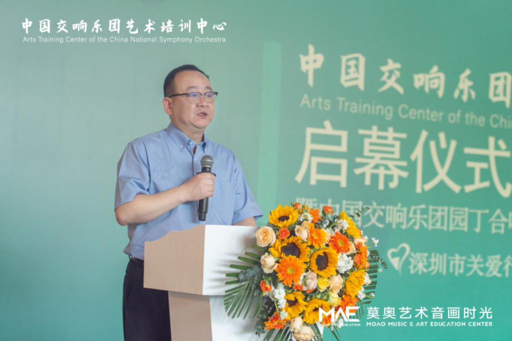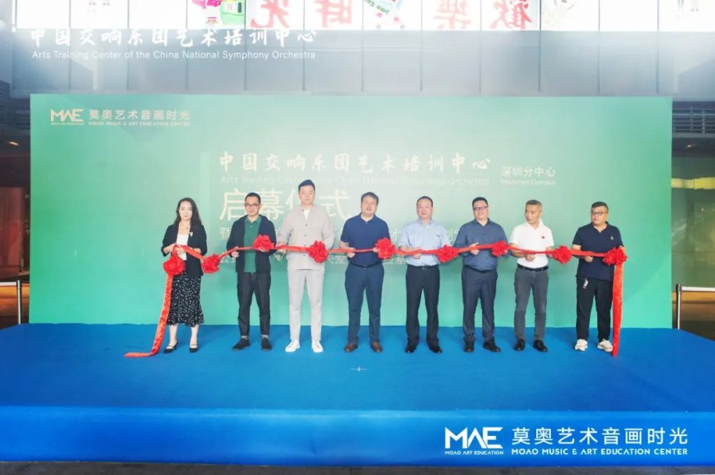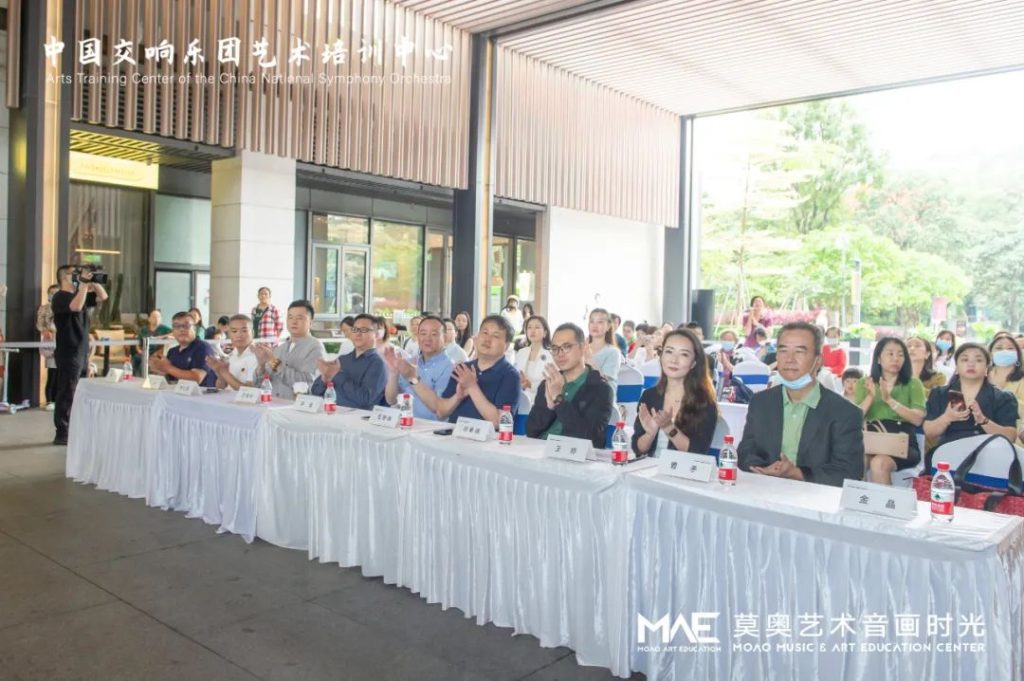 中國交響樂團副團長尹波、南山區(qū)文化廣電旅游體育局黨組成員、副局長任艷峰、中國交響樂團藝術(shù)培訓(xùn)中心主任王曉柯、中國交響樂團藝術(shù)培訓(xùn)中心深圳負責(zé)人韓仕英、華僑城歡樂時光項目負責(zé)人鄧皋峰、深圳市關(guān)愛行動基金會副秘書長魏平、莫奧藝術(shù)音畫時光校長王婷、莫奧藝術(shù)音畫時光行政總監(jiān)曹克等嘉賓出席了開幕儀式。