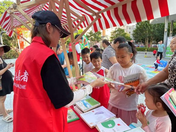 活動現(xiàn)場設(shè)有“換享游戲區(qū)”“換享市集區(qū)”“換享留影區(qū)”“換享觀影區(qū)”四大區(qū)域,吸引了200余名社區(qū)居民、志愿者、小朋友共同參與,發(fā)放《條例》手冊和宣傳資料250余份。