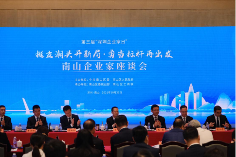 今天是第三屆“深圳企業(yè)家日”,就在此前一天,南山區(qū)召開了一場以“挺立潮頭開新局勇當(dāng)標(biāo)桿再出發(fā)”為主題的南山企業(yè)家座談會,政府部門、企業(yè)家代表共聚一堂,共同探討未來發(fā)展大勢,為南山區(qū)發(fā)展建言獻策。