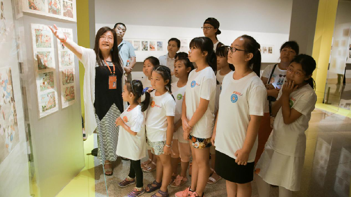 開營當天,孩子們還參觀了中國美術館《故事繪》連環(huán)畫展,中國美術館志愿者教員為環(huán)衛(wèi)子女介紹了中國美術館的歷史以及文明觀展禮儀。