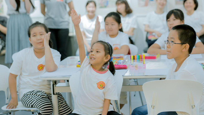 圖說:暑假藝術創(chuàng)作營學員在課堂上積極互動。