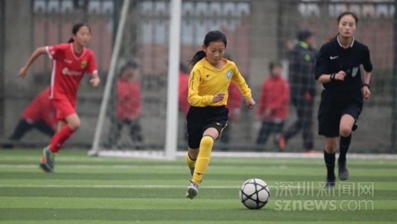 東方小學(xué)學(xué)生左婉欣代表寶安隊參加全國青少年足球比賽帶球突破