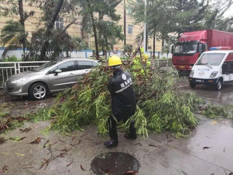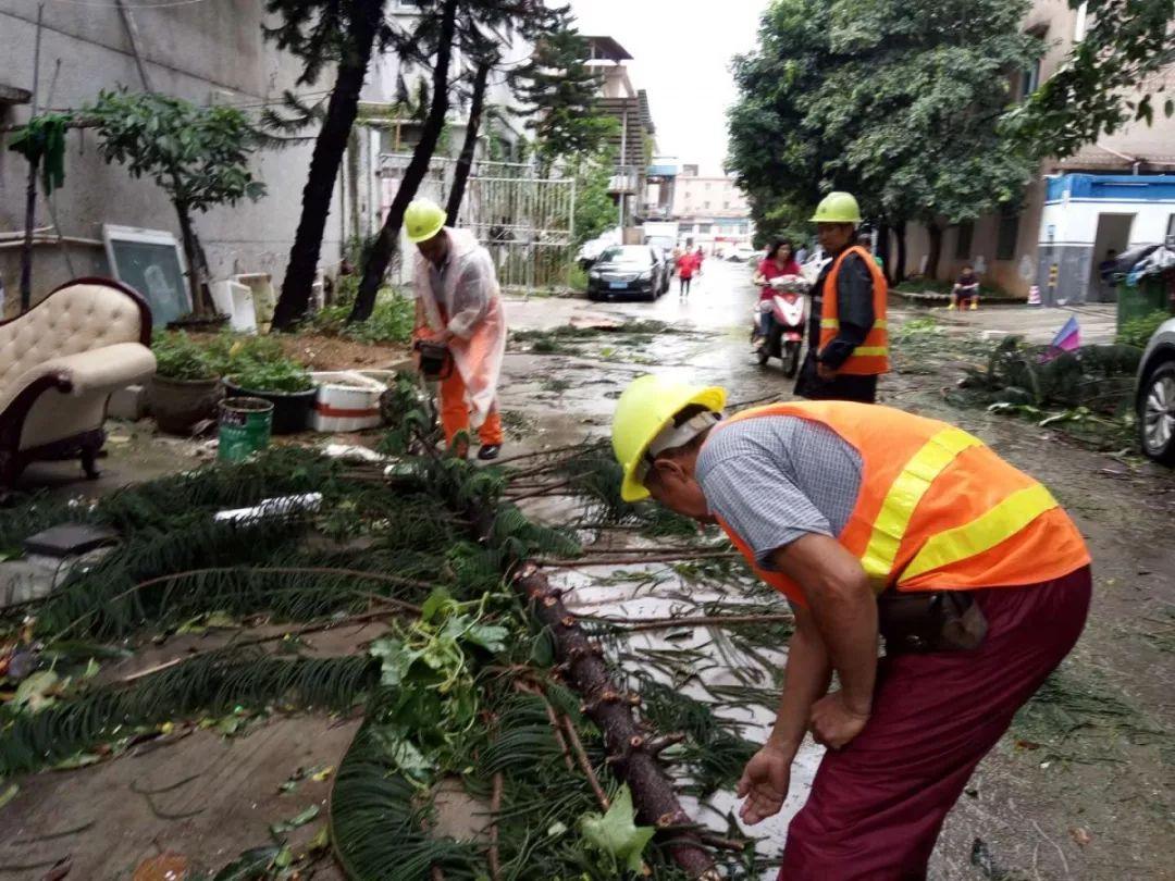 據(jù)統(tǒng)計,截至17日下午6時,福永街道共出動搶險人員770人,出動車輛45臺,清除路面障礙130余處,疏通道路邊溝橋涵70余處,修復交通設施45處,連夜貫通、清洗主干道路33條,扶正樹木283棵,清理枝葉約215.5噸、垃圾約198.5噸,修復垃圾桶630個、果皮箱330組,修復路燈15桿。