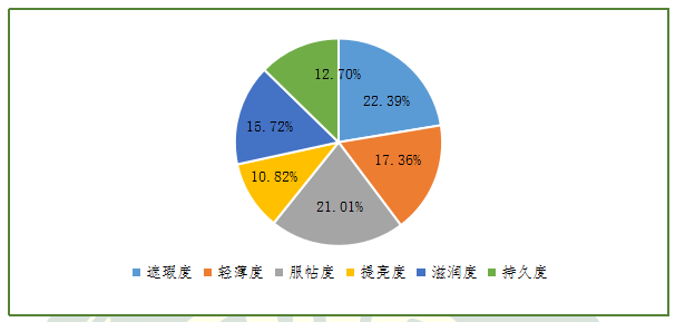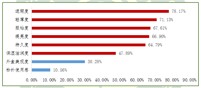 圖6.關注氣墊粉底使用性能指標的消費者人數(shù)占比