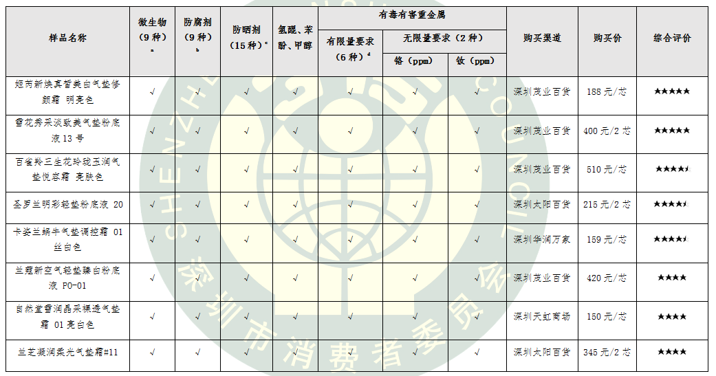 10月15日,深圳市消費者委員會將2018年氣墊粉底比較試驗報告向社會公布,具體報告如下: