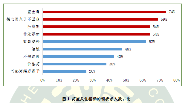對于氣墊粉底這類兼具BB/CC霜和粉底功效的新型彩妝產(chǎn)品,消費者最擔心的問題是什么呢?項目調查數(shù)據(jù)顯示,關注氣墊粉底“重金屬”問題的消費者占比高達74%,“擔心氣墊粉底用久了不衛(wèi)生”的消費者占比為69%,還有64%的消費者關注“防腐劑”和“非法添加劑”問題。