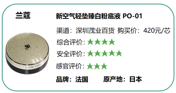 (一)本次比較試驗從消費者角度出發(fā),參考國標、歐盟(包含德國)、美國以及日本等國家和地區(qū)的標準對氣墊粉底進行測評,旨在為消費者篩選出達到國際一流標準的高品質產(chǎn)品。