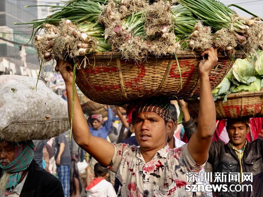 深圳新聞網(wǎng)2019年1月8日訊 在孟加拉,無論城市,還是鄉(xiāng)下,人們頭頂重物的情景,確實是無處不在的。李仁奇攝