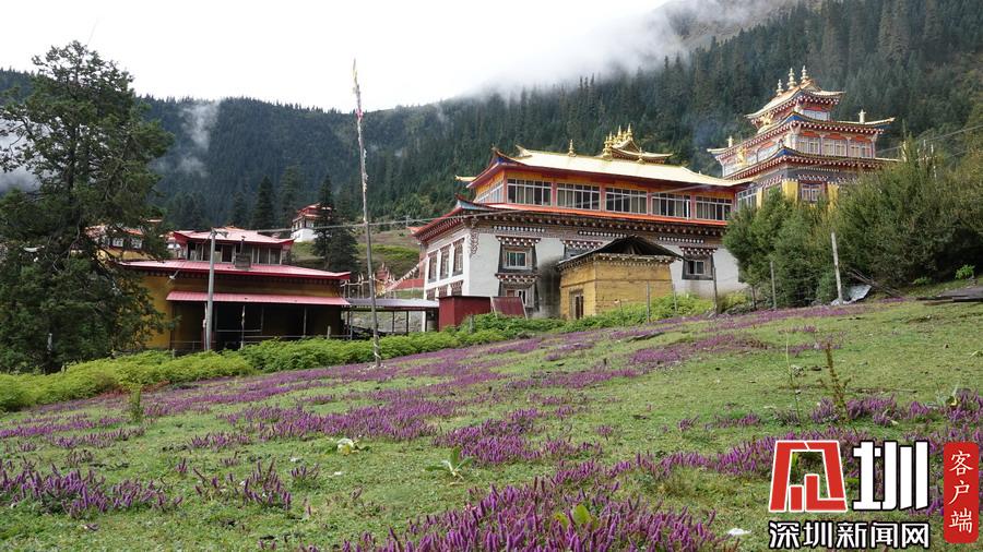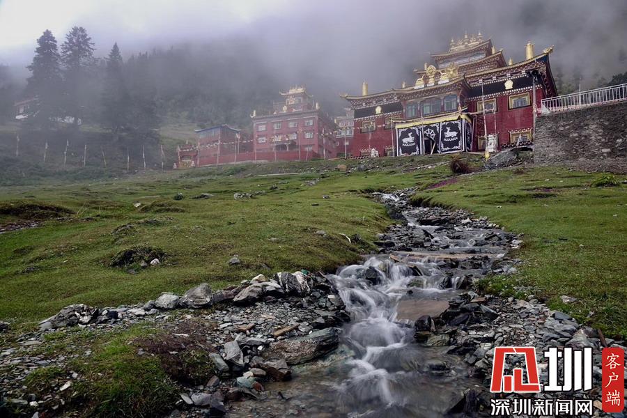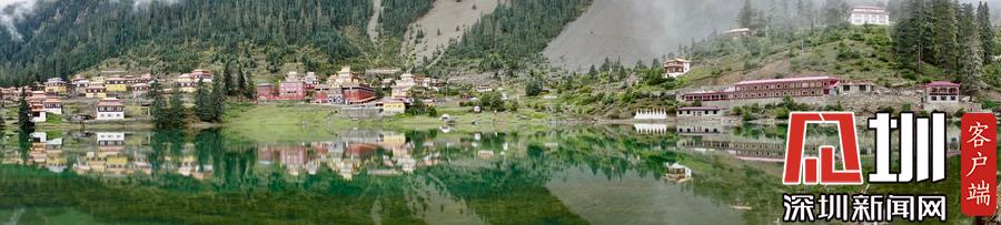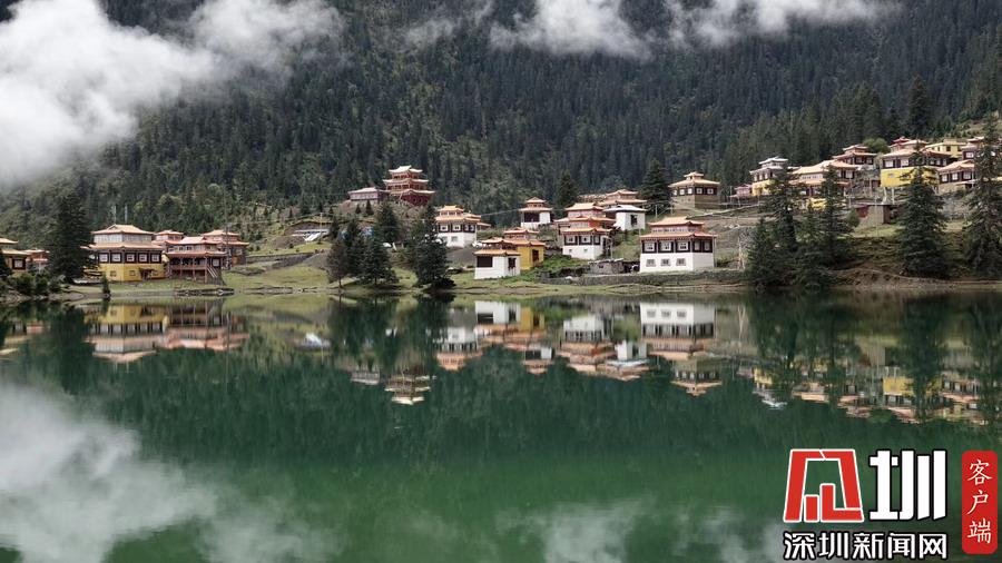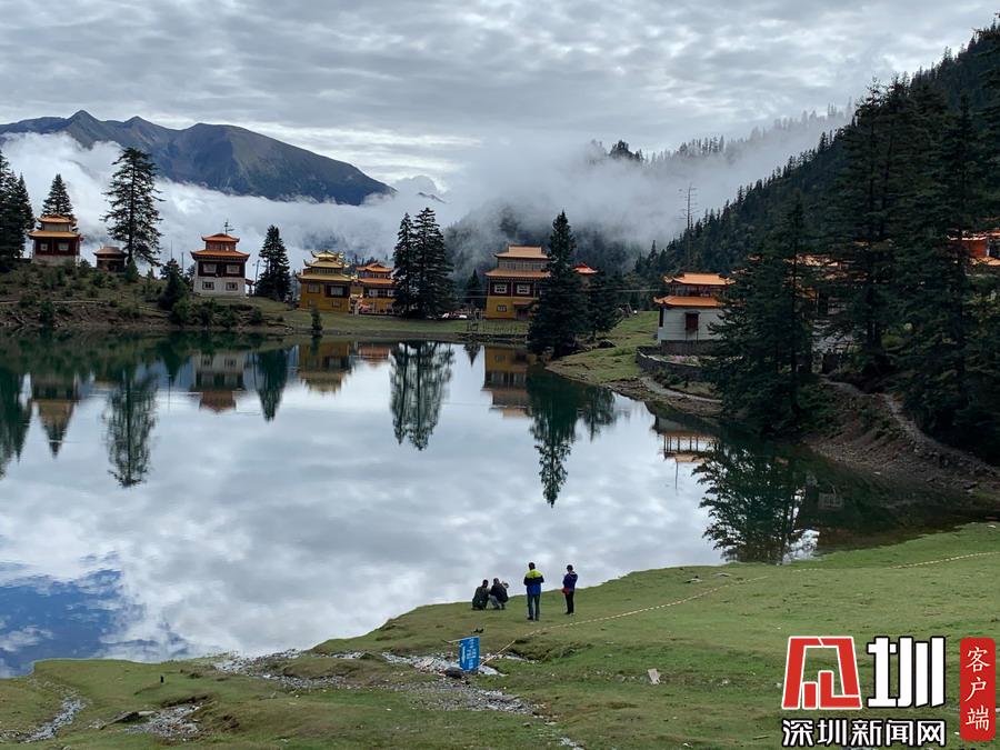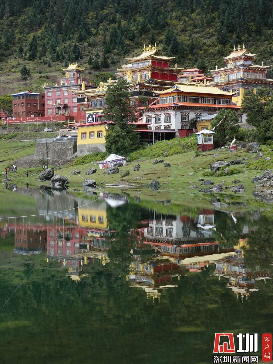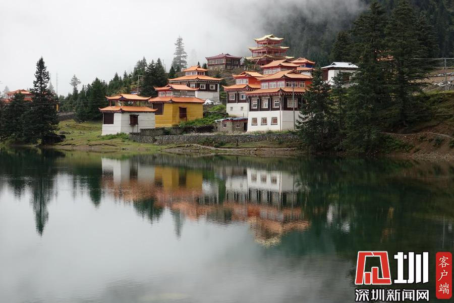 湖的四周是森林和由措卡寺寺僧主持修建的藏傳佛教各色建筑,它們時而云遮霧障,時而與藍天白云一起倒映在湖中。李仁奇攝