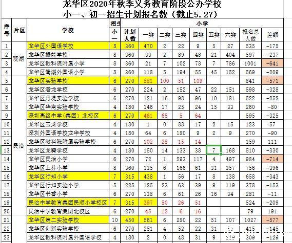 龍華區(qū)公辦學(xué)校小一、初一計劃報名數(shù)(市民供圖)