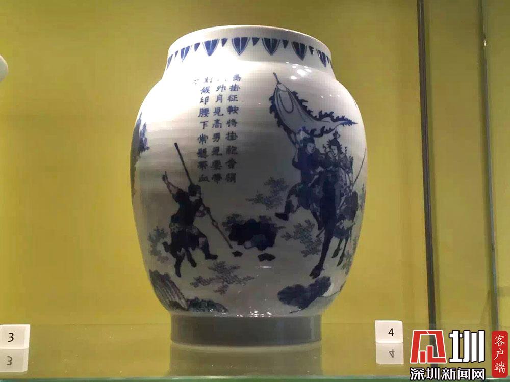 一件青花瓷瓶上有如下配圖詩文:“馬褂征鞍將褂袍,柳梢門外月兒高;男兒要帶封侯印,腰下常懸?guī)а丁!?/p>