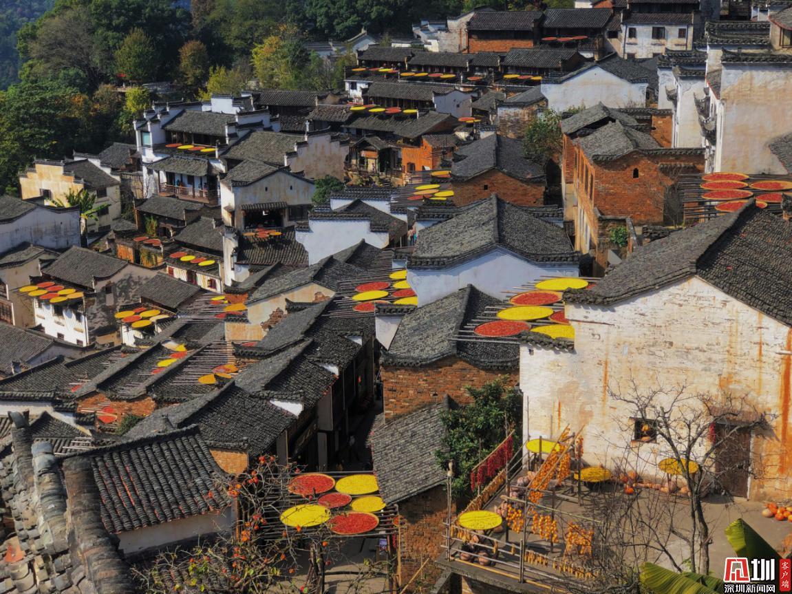 見(jiàn)圳客戶端·深圳新聞網(wǎng)2020年11月25日訊 江西婺源縣篁嶺村獨(dú)特的“曬秋”農(nóng)俗景觀。篁嶺村位于江西省上饒市婺源縣東北部,是著名的“曬秋”文化起源地,也是一座距今近六百年歷史的徽州古村。每當(dāng)日出山頭,數(shù)百棟徽派古民居在百米落差的坡面錯(cuò)落排布,整個(gè)山間村落徽式民居土磚外墻與曬架上五彩繽紛豐收成果組合,繪就出“曬秋”農(nóng)俗特色景觀。